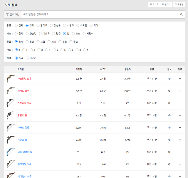 See Gg 씨지지 리니지m 리니지2m 아이템 시세검색